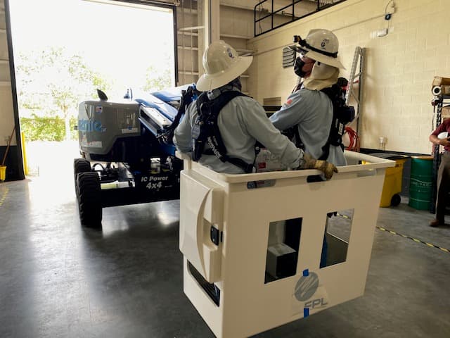 “This has been a project that Terex, Genie, Ring Power and Florida Power & Light have been working on for quite some time now,” said South Florida account manager Bennett Ruffin. “With the Genie Z-45 SUB, which was purposely designed by Terex and Genie for substation work, it has specific features like the fiberglass jib sections, fiberglass platform and isolated upper controls built in to isolate the boom tip from the chassis ground.”